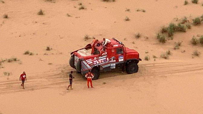 На 33-м километре восьмого спецучастка восьмого этапа ралли по маршруту Байинбаолиг — Алашань его грузовик перевернулся.
