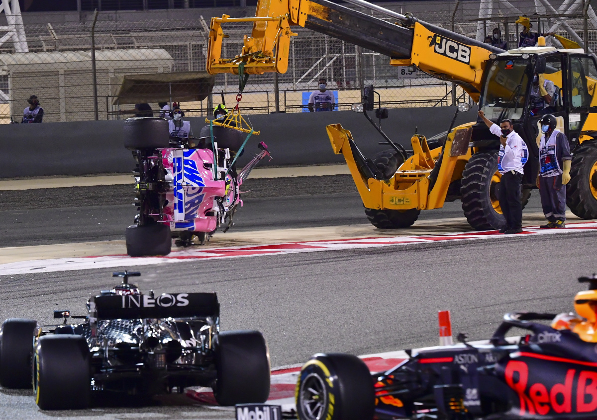 После возобновления гонки Гран-при Бахрейна «Формулы-1» болид канадского пилота Лэнса Стролла из команды «Рейсинг Пойнт» вылетел на обочину и перевернулся.