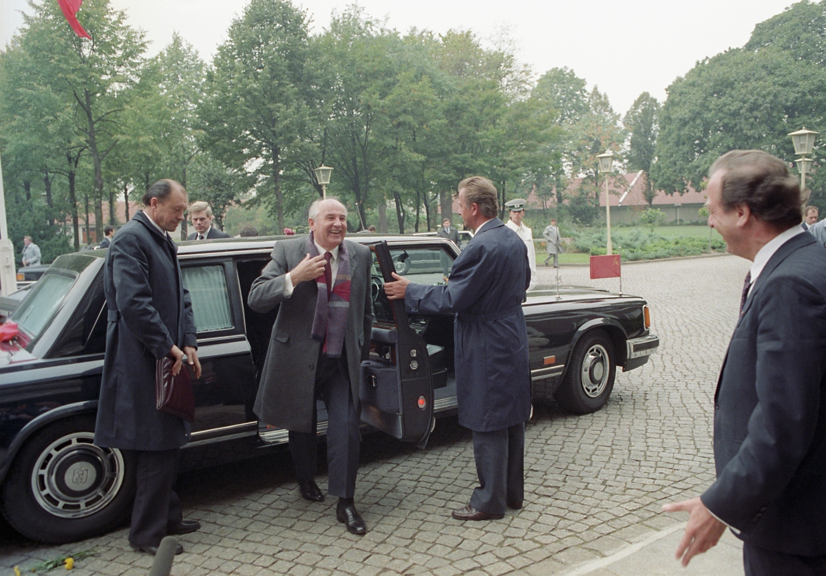 На последних метрах протокольного маршрута к дворцу Шенхаузен в Берлине Панков жители Восточного Берлина приветствуют президента СССР Михаила Горбачева