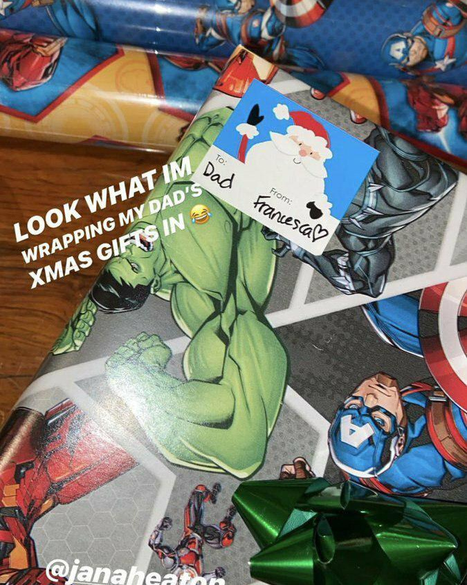 Смотрите, во что я оборачиваю подарки для папы на Рождество! — написала она в сторис в Instagram.
