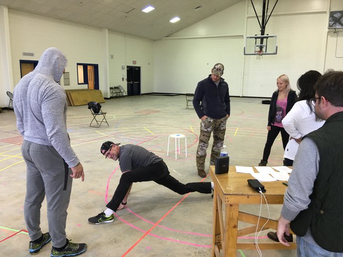 Ганн выложил фотографии большого пустого зала, в котором есть только несколько стульев и столов. На бетонном полу помещения нанесена разноцветная разметка. Как объяснил кинематографист, лентой были обозначены локации, использованные в картине.