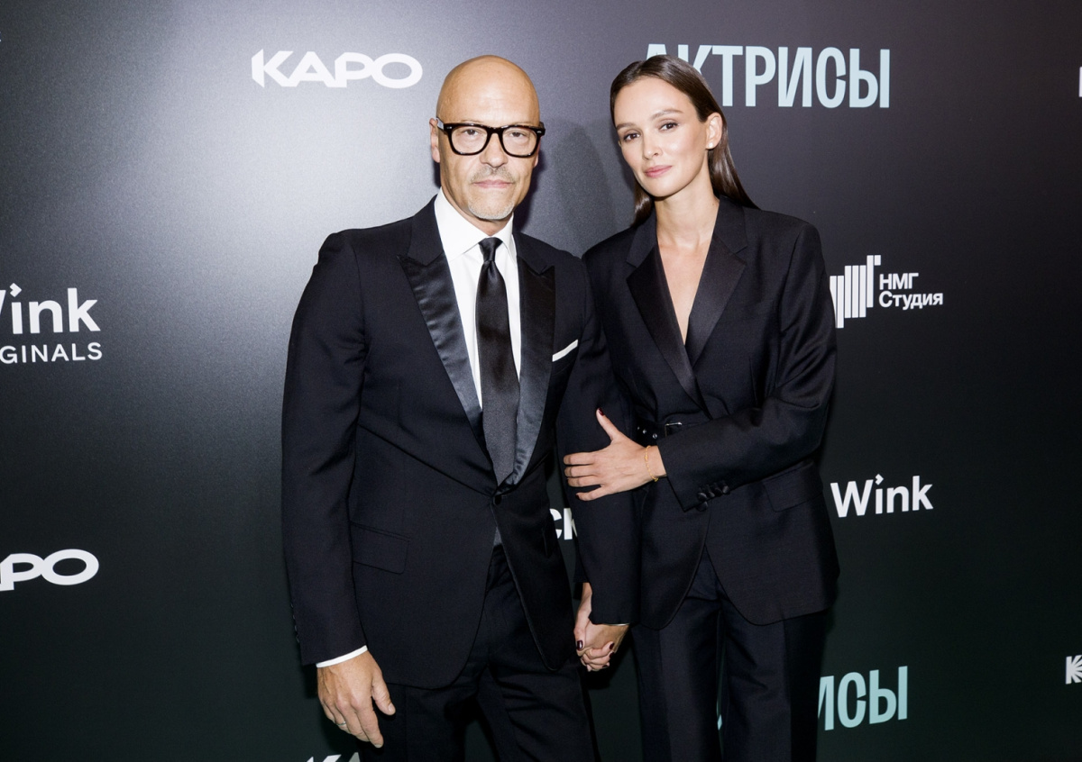 Продюсер Алексей Киселев с супругой, актрисой Марусей Фоминой на премьере сериала «Актрисы» в кинотеатре «КАРО 11 Октябрь» в Москве