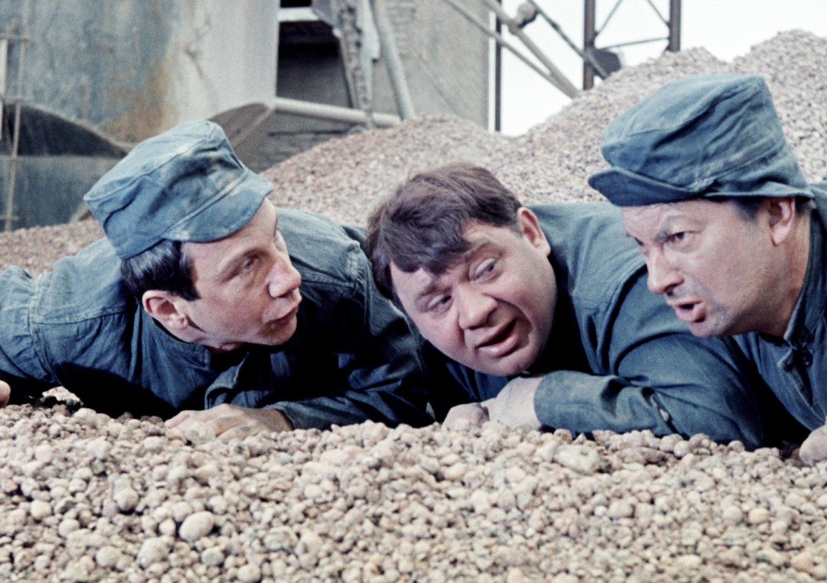 Поскольку технической прогресс в советское время не позволял использовать современные технологии для съемки трюков, ради некоторых сцен актерам приходилось подвергать себя немалому риску, сообщает SevastopolMedia. Так, чтобы сымитировать жидкий цемент, создатели «Джентльменов удачи» использовали специальную смесь из хлебной закваски с луковой эссенцией.