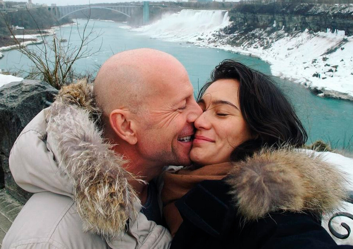 На снимке пара позирует на фоне Ниагарского водопада. 45-летняя актриса одета в черную парку с мехом и коричневый шарф. На 68-летнем Уиллисе надет серый пуховик. Актер стоит, прижавшись к жене, и улыбается. Фотография стала одной из немногих, опубликованных после обнародования диагноза Брюса Уиллиса — актеру поставили деменцию.