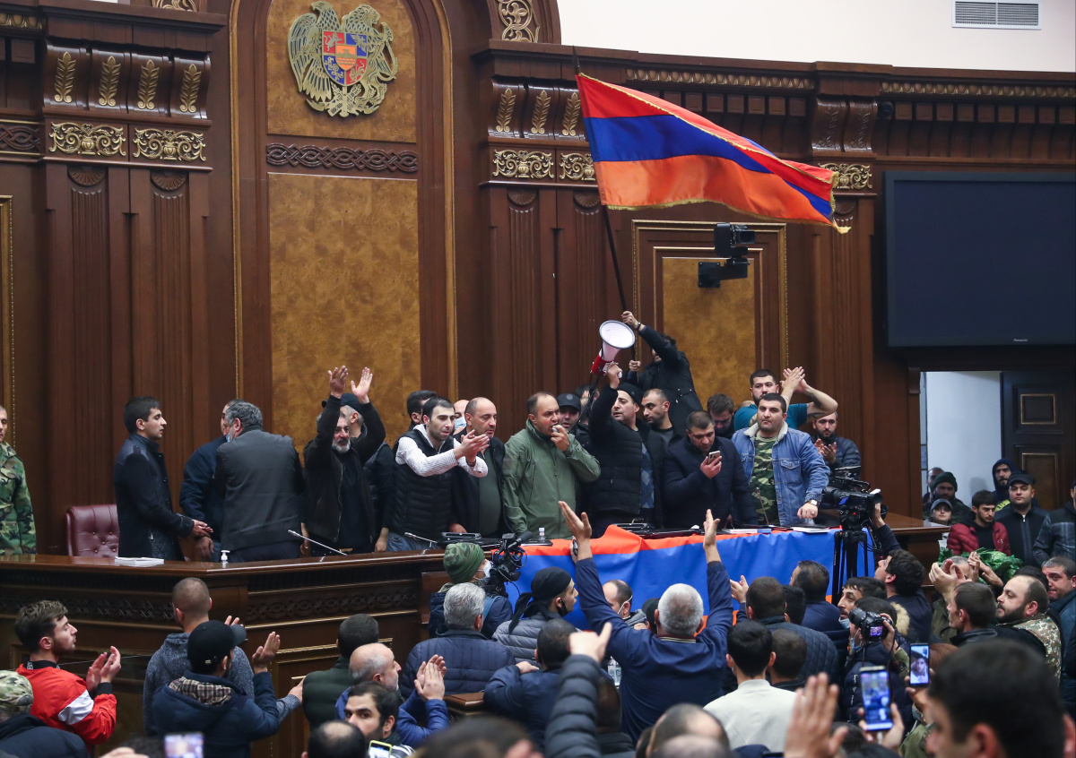 Сообщения о мирной сделке вызвали волнения в Ереване. Беспорядки докатились до зала заседаний парламента Армении, в результате чего тяжело пострадал спикер Арарат Мирзоян. Оппозиционная парламентская фракция «Процветающая Армения», в свою очередь, сообщила о намерении созвать внеочередное парламентское заседание для выхода страны из карабахских договорённостей.