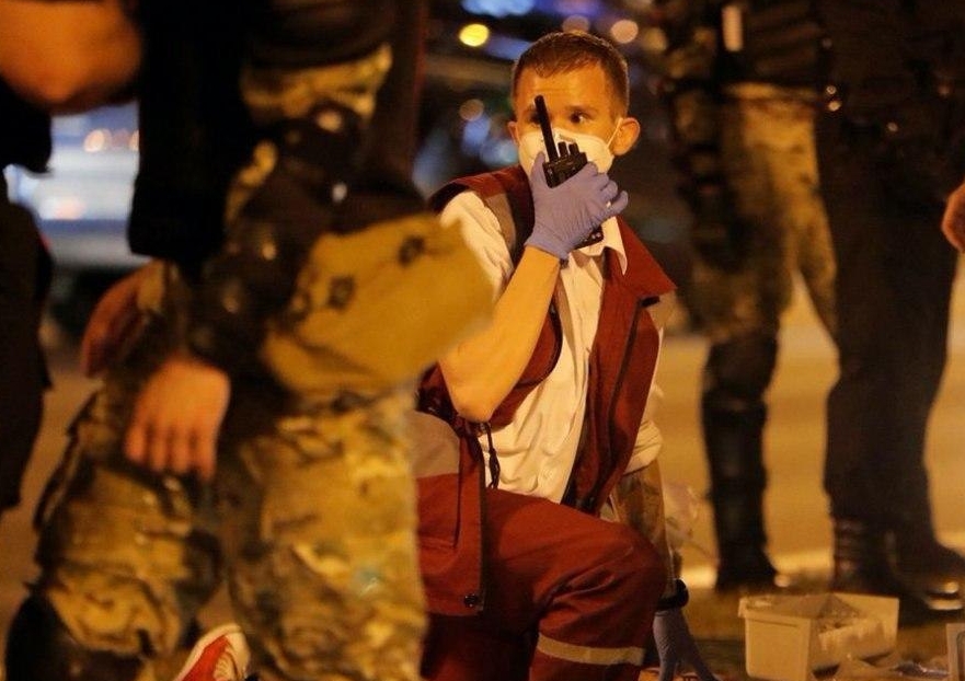 По словам очевидцев происшествия, после того как к пострадавшему на помощь кинулись люди, в их сторону силовики стали бросать светошумовые гранаты. Молодой человек получил серьёзные травмы, его увезли медики, передаёт Tut.by.