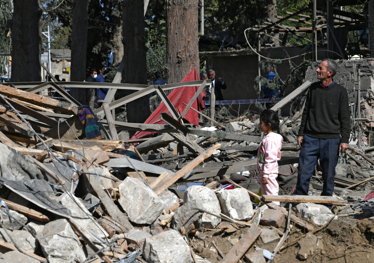 Обстрел Гянджи произошёл в ночь на 11 октября, несмотря на договорённости между государствами о прекращении огня, достигнутые 9 числа. По сообщению Баку, одна из ракет попала в жилой дом на территории второго по численности населения города страны. Президент Ильхам Алиев расценивает произошедшее как военное преступление.