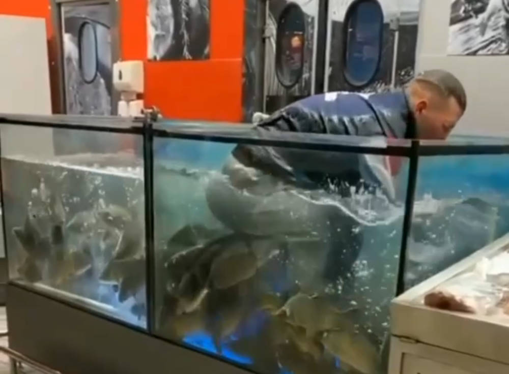 Белорус залез в аквариум в супермаркете ради спасения обручального кольца