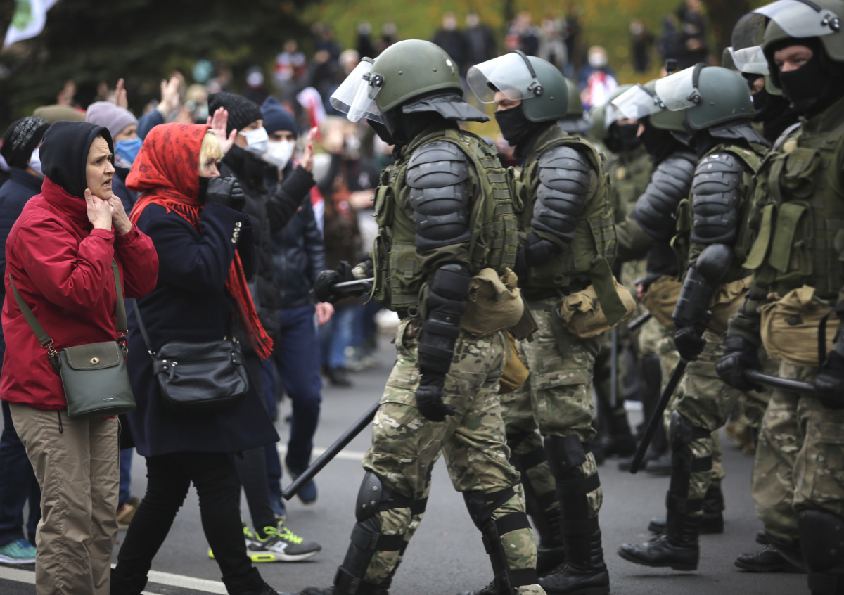 Как писал NEWS.ru, силовики со щитами встретили 8 ноября 2020 года протестующих на проспекте Машерова и других улицах белорусской столицы. Они не позволяют гражданам перемещаться по Минску.