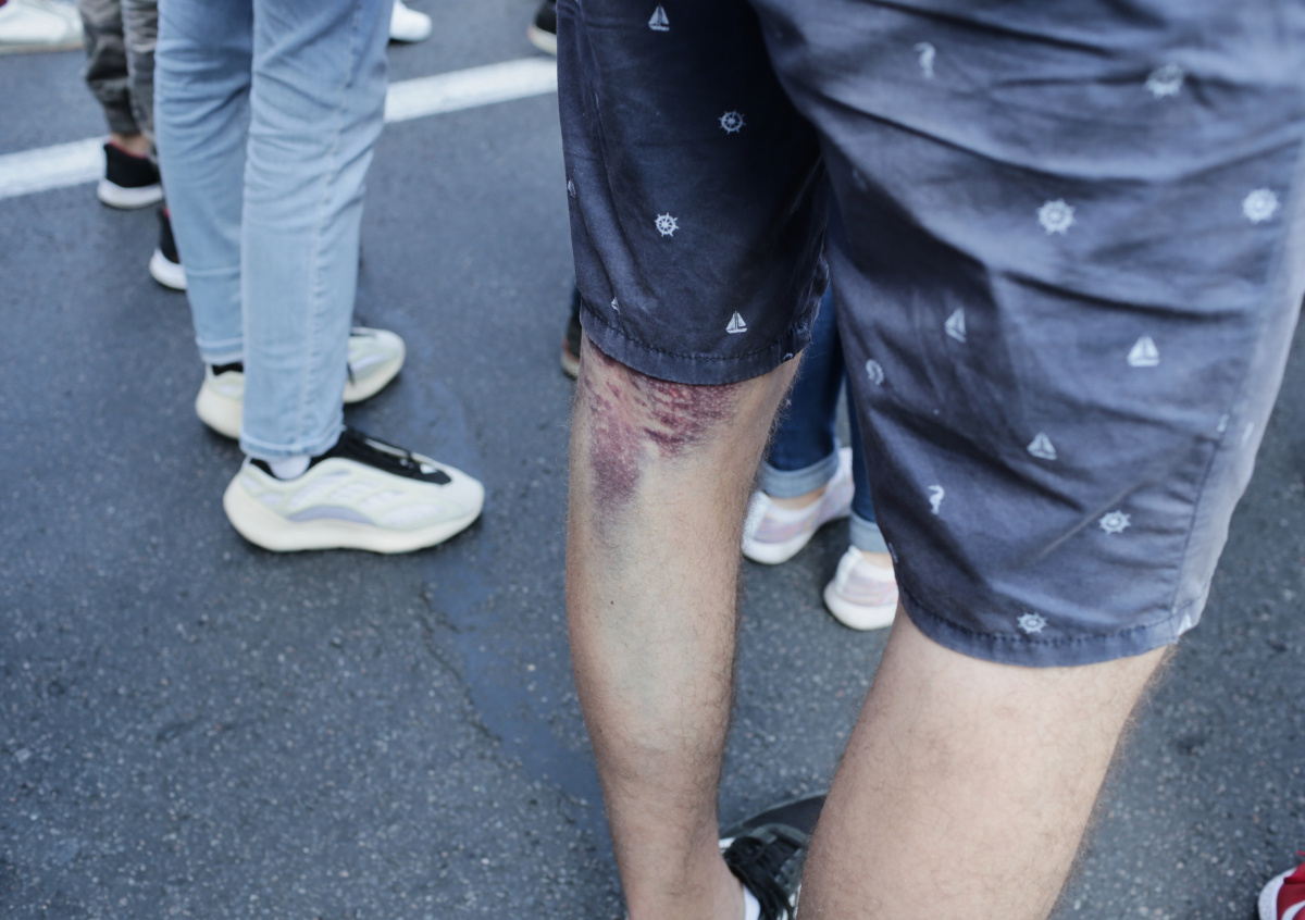 Я лежал на полу автозака, а он ножом крест-накрест разрезал мне сзади шорты и трусы. Попросил у «коллег» презерватив. Я лежал на полу лицом вниз, но видел, как он презерватив натягивает на резиновую дубинку. И он засунул мне дубинку в задний проход. Вытащил и опять потребовал пароль. А потом начал избивать — и кулаками, и ногами. Я получил по рёбрам, по лицу, в зубы — два передних раскрошились, — рассказал он.