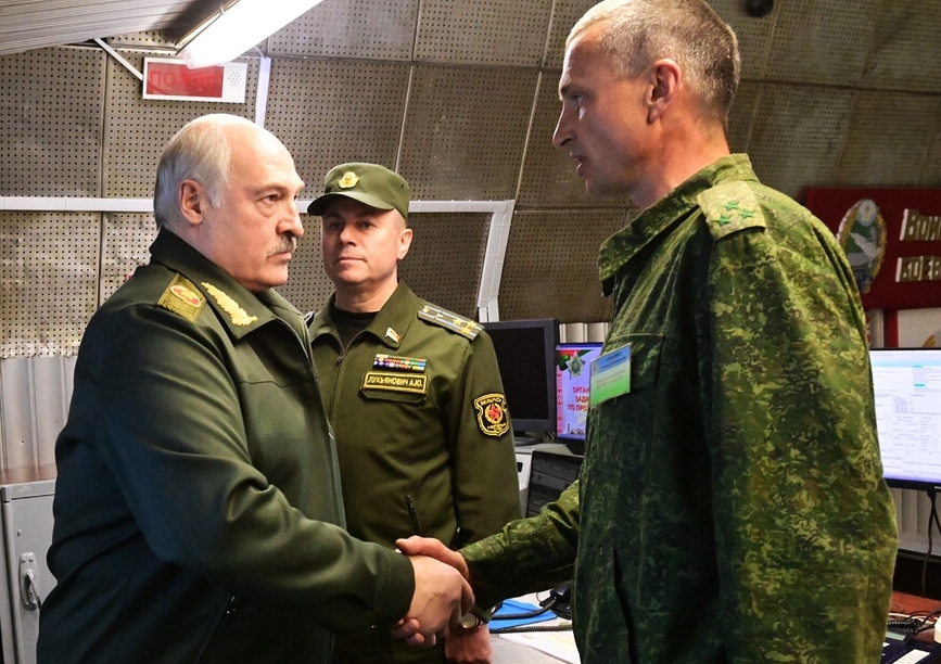 Александр Лукашенко во время посещения командного пункта