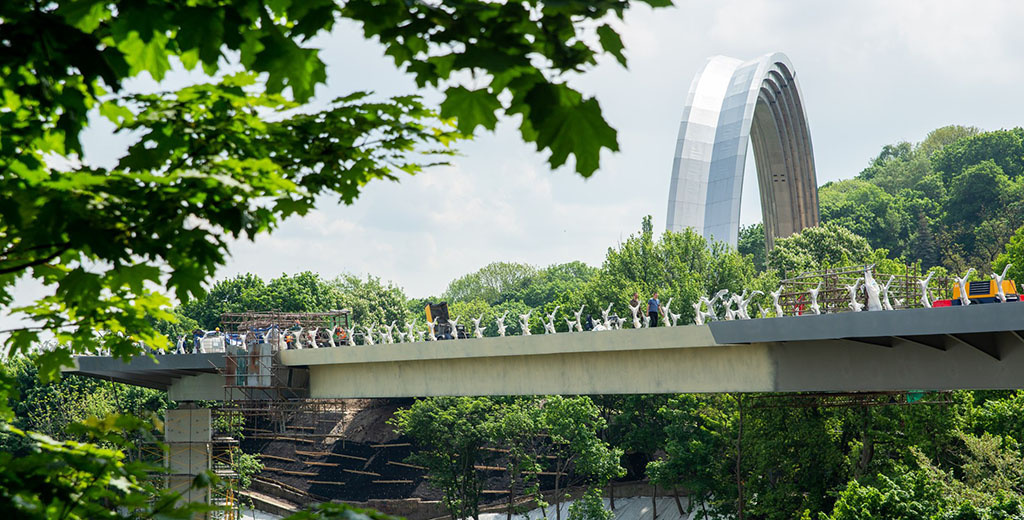 В День Киева, 26 мая, на конструкции треснули два защитных стекла-плёнки, путь через мост перекрыли. Глава города Виталий Кличко попросил полицейских оценить инцидент с правовой точки зрения, пообещав замену стёкол в течение суток. По данным мэрии, предварительная причина инцидента — вандализм. Позже в СМИ появились сообщения о новых трещинах, писал News.ru.