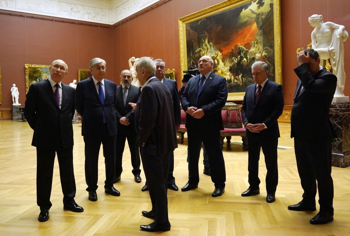 В нем участвуют президент России Владимир Путин, президент Белоруссии Александр Лукашенко, президент Азербайджана Ильхам Алиев, президент Узбекистана Шавкат Мирзиеев, президент Таджикистана Эмомали Рахмон, премьер-министр Армении Никол Пашинян и президент Туркмении Сердар Бердымухамедов.
