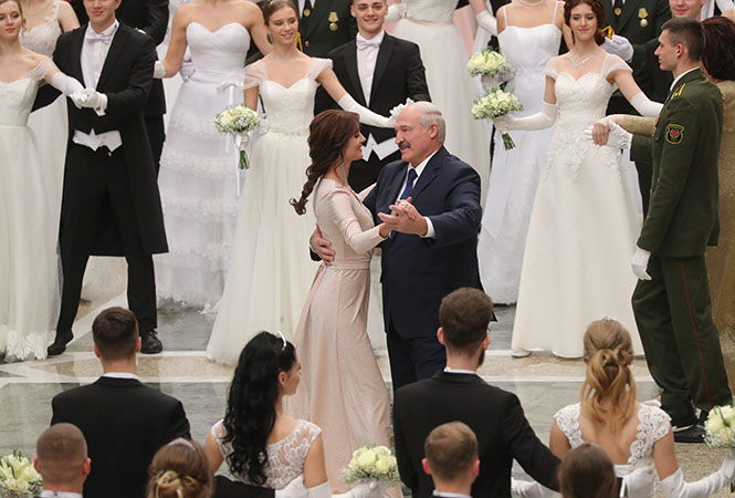 Президент Белоруссии Александр Лукашенко станцевал с финалисткой конкурса красоты на первом Венском балу.