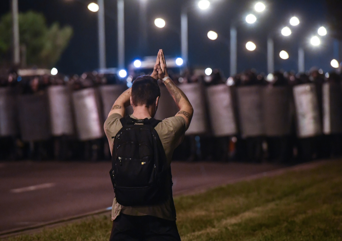 Выборы президента Белоруссии состоялись 9 августа 2020 года. В этот же день после закрытия избирательных участков начались массовые акции протеста. Для разгона их участников силовики применили водомёты, светошумовые гранаты и слезоточивый газ.