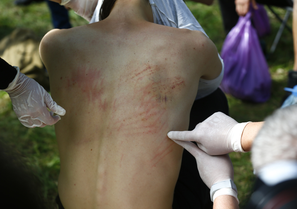 Фельдшер скорой помощи, которая 13 августа дежурила в ИВС на Окрестина, рассказала РБК, что только за одну смену, с 11:00 до 17:00, ее бригада госпитализировала из изолятора не менее 14 человек. По её словам у пострадавших — чёрные кровоподтёки на ногах и руках от ударов дубинками, разбитые головы. Кроме того, по ночам в ИВС задержанных выводили во внутренний двор, там клали животом на землю, и они так лежали до утра, а если сопротивлялись, то их били.