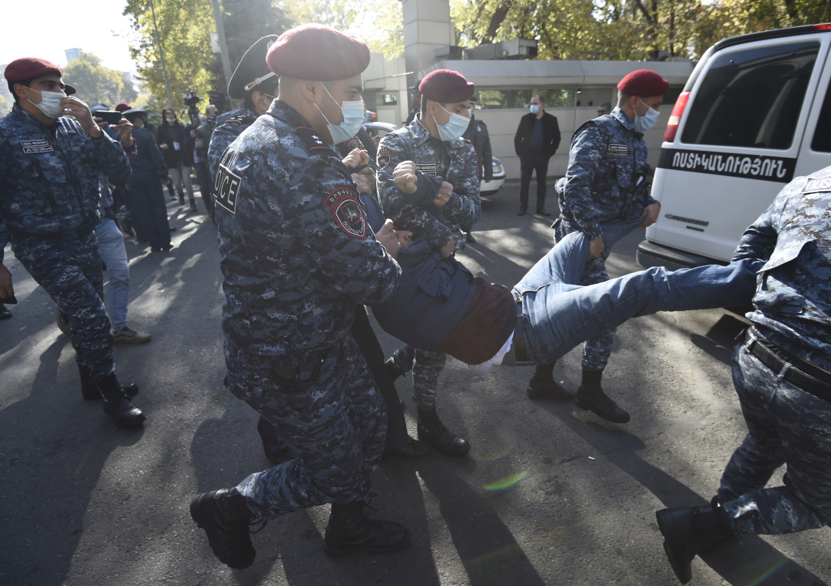 11 ноября в центре Еревана вспыхнули акции протеста против соглашения Армении с Азербайджаном и Россией о прекращении боевых действий в Нагорном Карабахе. На митинг собрались более тысячи человек.