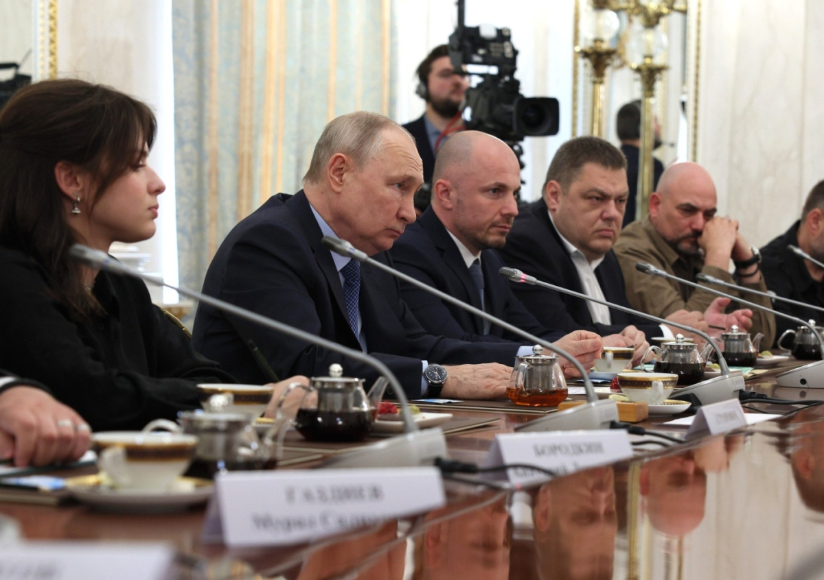 Президент РФ Владимир Путин (в центре) во время встречи с военными корреспондентами в Кремле