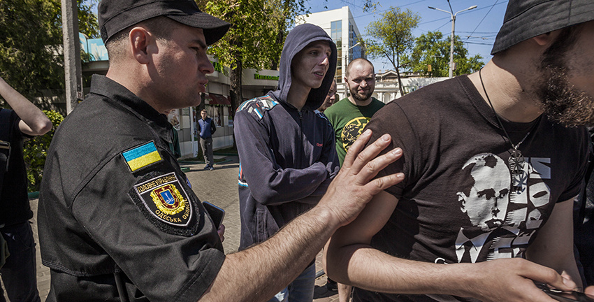 Одесские полицейские конфисковали несколько перочинных ножей и газовых баллончиков, с которыми участники траурных мероприятий пытались пройти на Куликово поле.