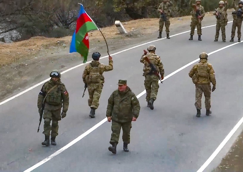 В ночь на 10 ноября лидеры России, Азербайджана и Армении Владимир Путин, Ильхам Алиев и Никол Пашинян приняли совместное заявление об условиях прекращения конфликта в Нагорном Карабахе. По условиям соглашения армии Армении и Азербайджана останутся на занятых местах. Соблюдение режима прекращения огня будут контролировать российские миротворцы.