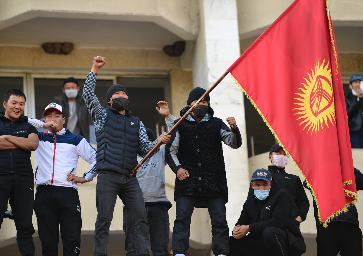 Акции протеста охватили Бишкек 5 октября. Митингующие недовольны итогами голосования. Согласно предварительным результатам, в законодательный орган прошли только проправительственные и центристские партии, а ещё 11 политических объединений не смогли преодолеть пороговый барьер в 7%.