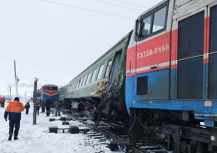 5 марта, ориентировочно в 10:30, в Актюбинской области, Шалкарский район, ж/д станция Бершугир, по предварительным данным, из-за бокового столкновения с маневровым локомотивом произошел сход тепловоза, вагона № 1 и трех колесных пар вагона № 2 пассажирского поезда № 317 сообщением Бишкек — Самара, — сообщает МЧС.