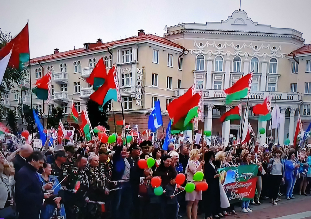 Когда протестующие двинулись в сторону резиденции президента Белоруссии (Дворец независимости), на территорию Дворца подлетел вертолёт. Из вертолёта вышел президент Белоруссии Александр Лукашенко в бронежилете, одетый во всё чёрное, в его руках был автомат. «Интерфакс» уточняет, оружие было без магазина с патронами.