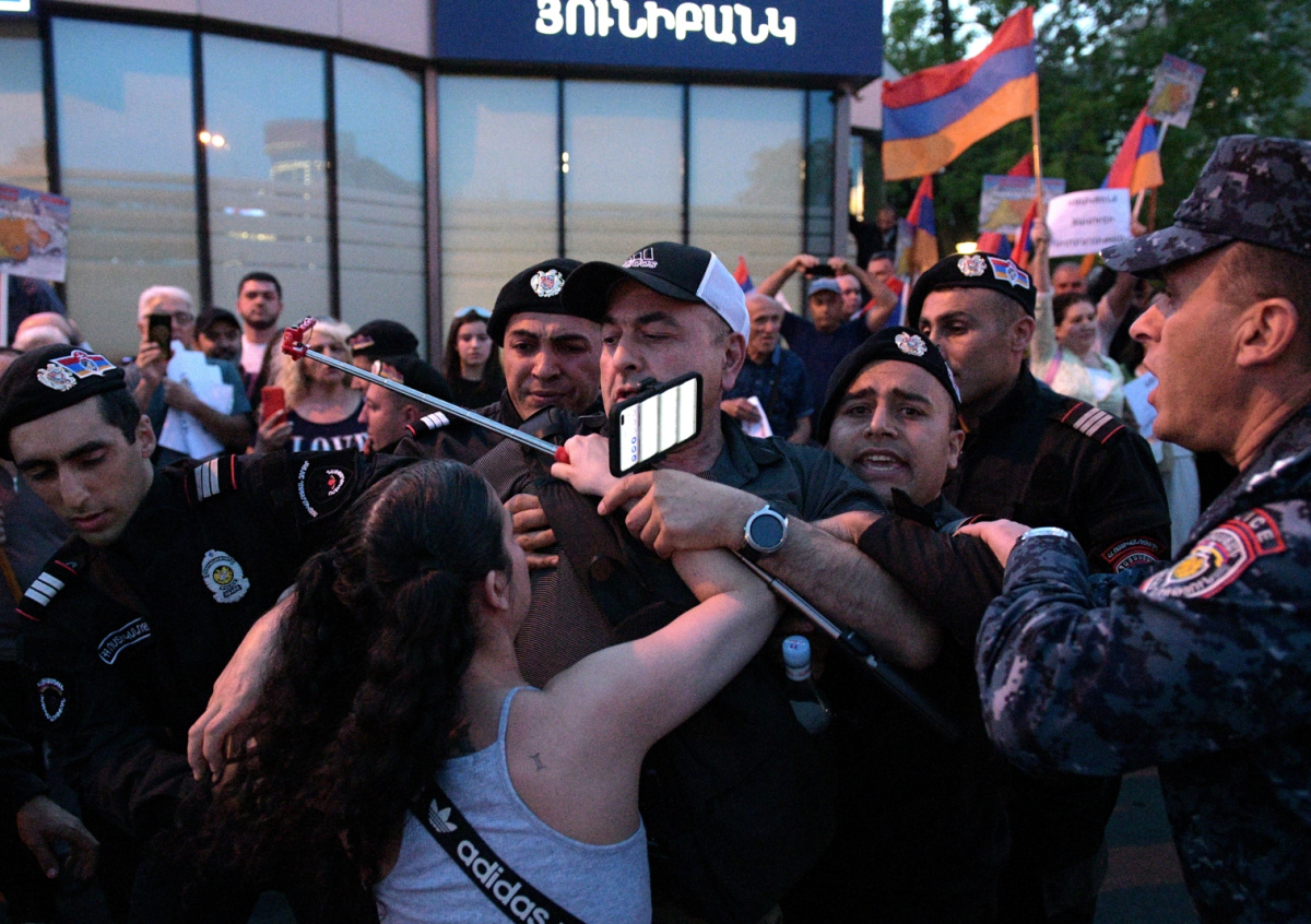 Как сообщил в соцсетях депутат от оппозиционной фракции Армении Гарник Даниелян, полицейские применили силу против задержанных.