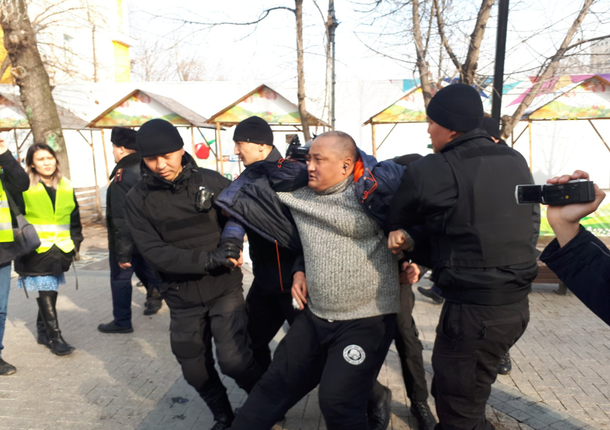На прилегающих к площади («Астана» — прим. NEWS.ru) улицах и в сквере производится задержание людей, пришедших на митинг. Сотрудники полиции подходят, проверяют документы и сопровождают в полицейский автобус, — сообщает «Интерфакс-Казахстан» со ссылкой на своего корреспондента в Алма-Ате.