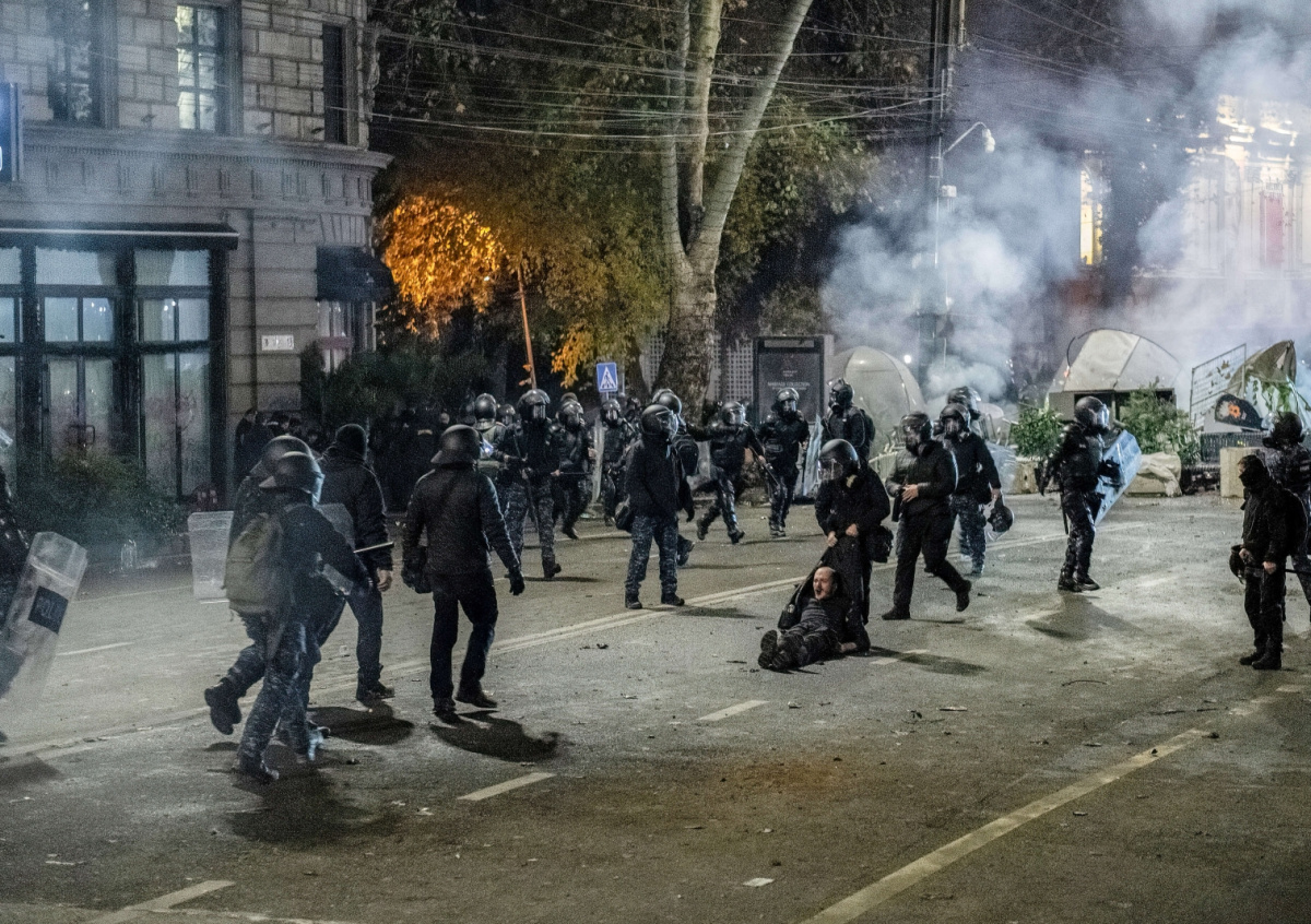 В ночь на 1 декабря участники акции протеста в Тбилиси устроили пожар в здании парламента Грузии. Митингующие в течение нескольких часов кидали петарды. Одна из петард залетела в окно здания, после чего произошло возгорание. Спикер парламента Шалва Папуашвили рассказал, что протестующие повредили 48 комнат здания.