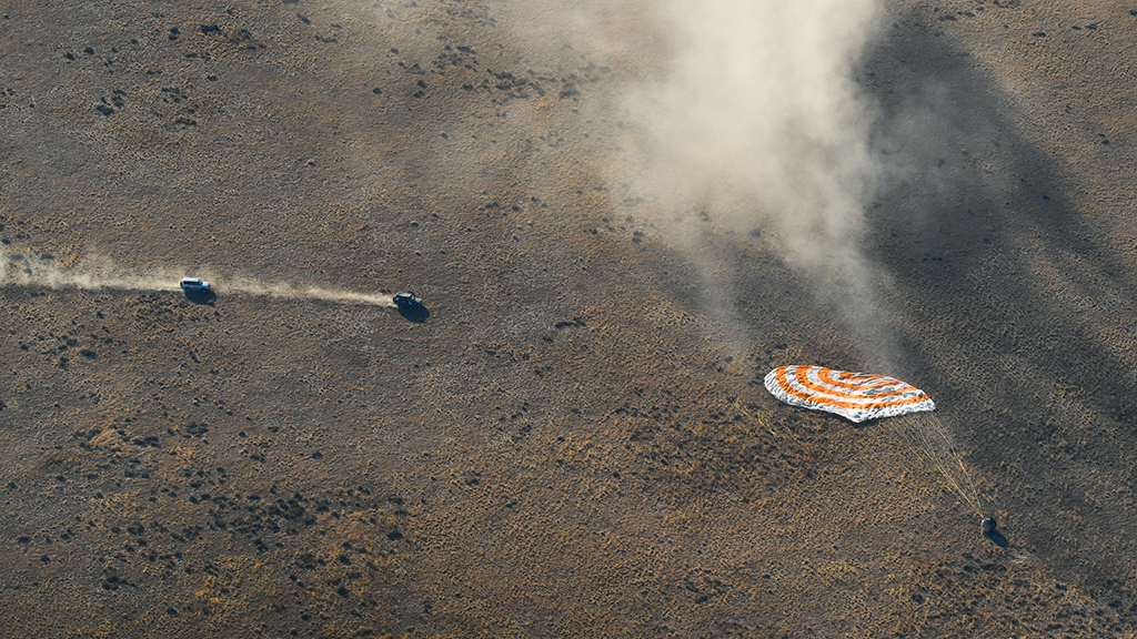 «Есть посадка»: кадры возвращения на Землю трёх членов экипажа МКС