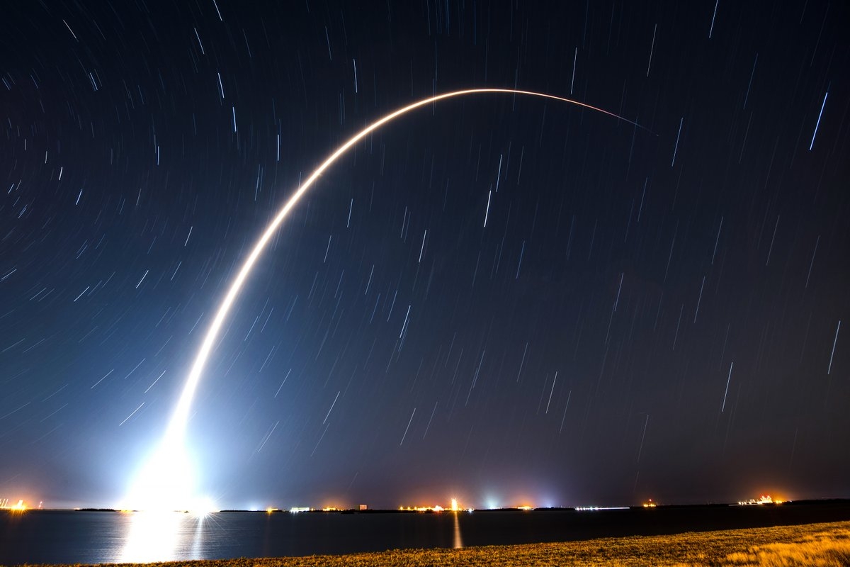Полёт корабля Falcon 9 со спутниками Starlink на борту Полёт корабля Falcon 9 со спутниками Starlink на борту Фото: SpaceX/Global Look Press`
