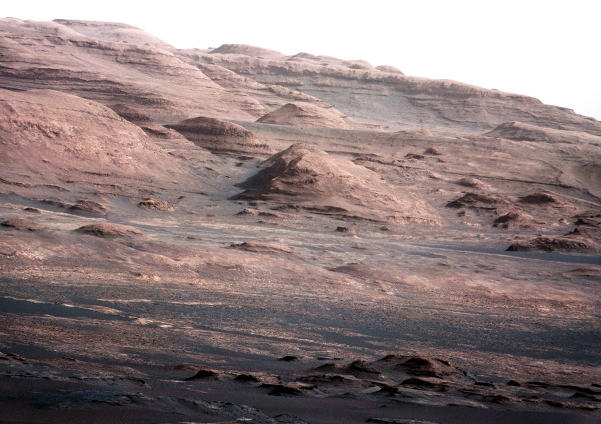 Светлые залежи указывают на выход коренных пород, которые могут содержать в себе древние глинистые минералы, сформировавшиеся в присутствии воды. Кроме того, здесь также хорошо видны нанесённые ветром песчаные отложения, создающие «рябь» на дне кратера. Их характерный рыжевато-коричневый оттенок указывает на наличие оксидов железа, — сообщается на сайте Роскосмоса.