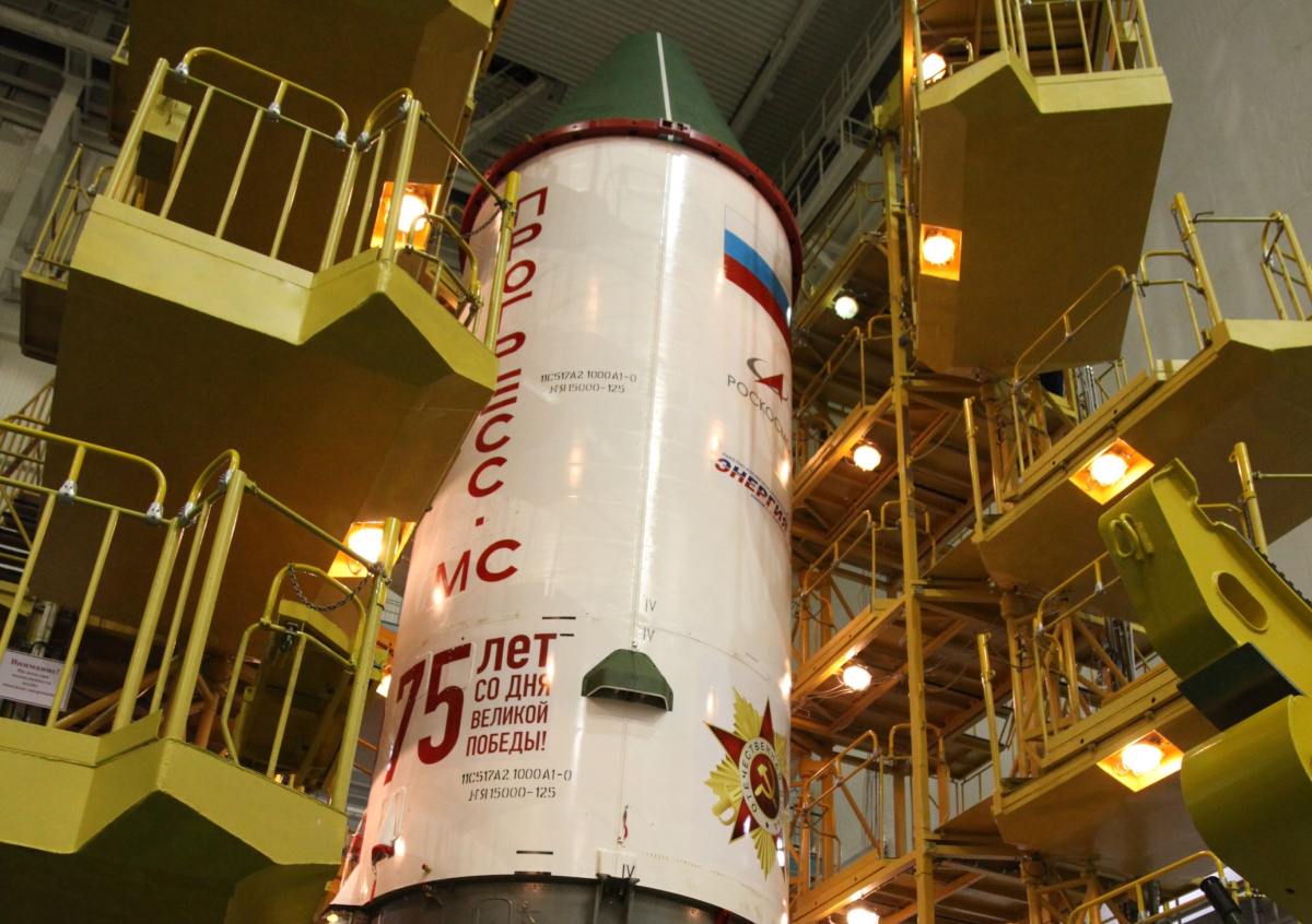 Роскосмос опубликовал снимки грузового космического корабля «Прогресс МС-14» и «Ракеты Победы» — носителя «Союз-2.1а» с нанесённым на него логотипом 75-й годовщины Победы, георгиевской ленты и орденов Великой Отечественной войны. 25 апреля с космодрома Байконур запланирован пуск этой ракеты к МКС.