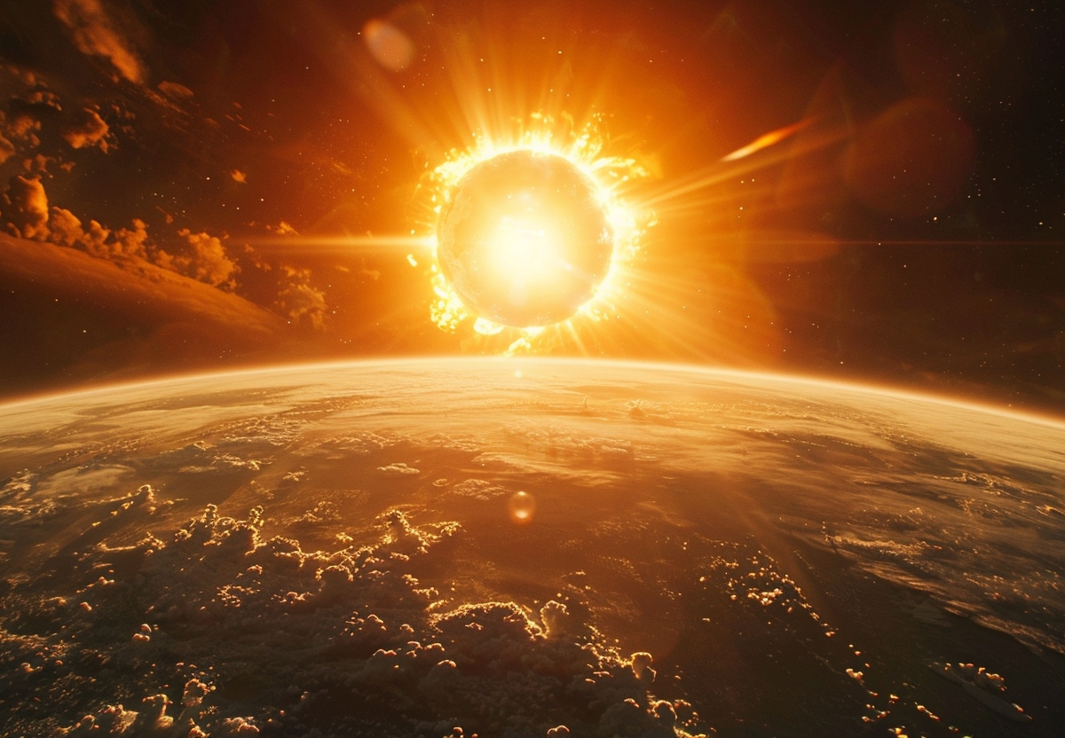 По Земле сегодня около шести утра был нанесен удар тяжелыми частицами от Солнца (главным образом, протонами очень высоких энергий — от 10 млн эВ и вплоть до выше 100 млн эВ). Если перевести эту энергию в температуры, то это соответствует цифрам T около одного миллиарда градусов, — сказано в сообщении.