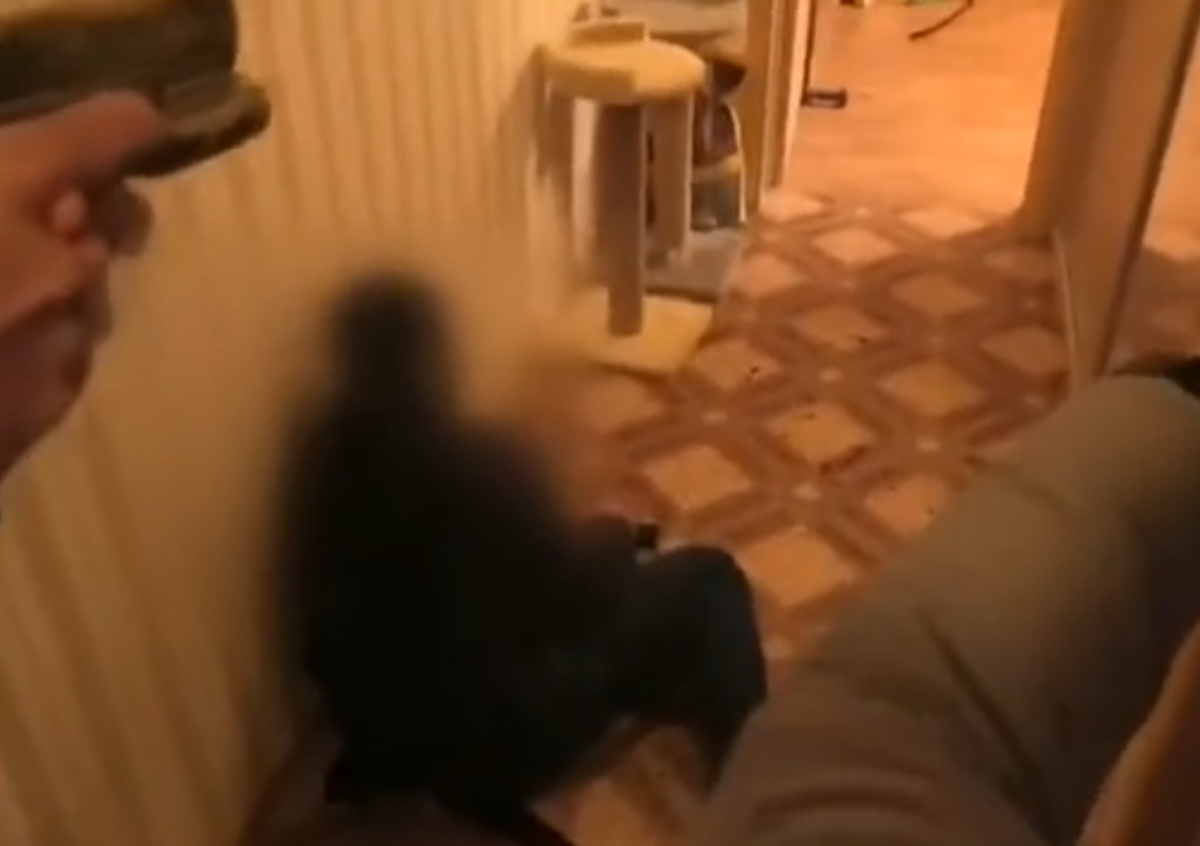 На кадрах видно, как группа захвата выламывает дверь в течение нескольких минут. При этом есть и съёмка из квартиры, которую вели предполагаемые преступники, пока к ним пытались прорваться силовики. В квартире находились два человека — мужчина с ружьём и женщина, которая снимала всё на камеру мобильного телефона.