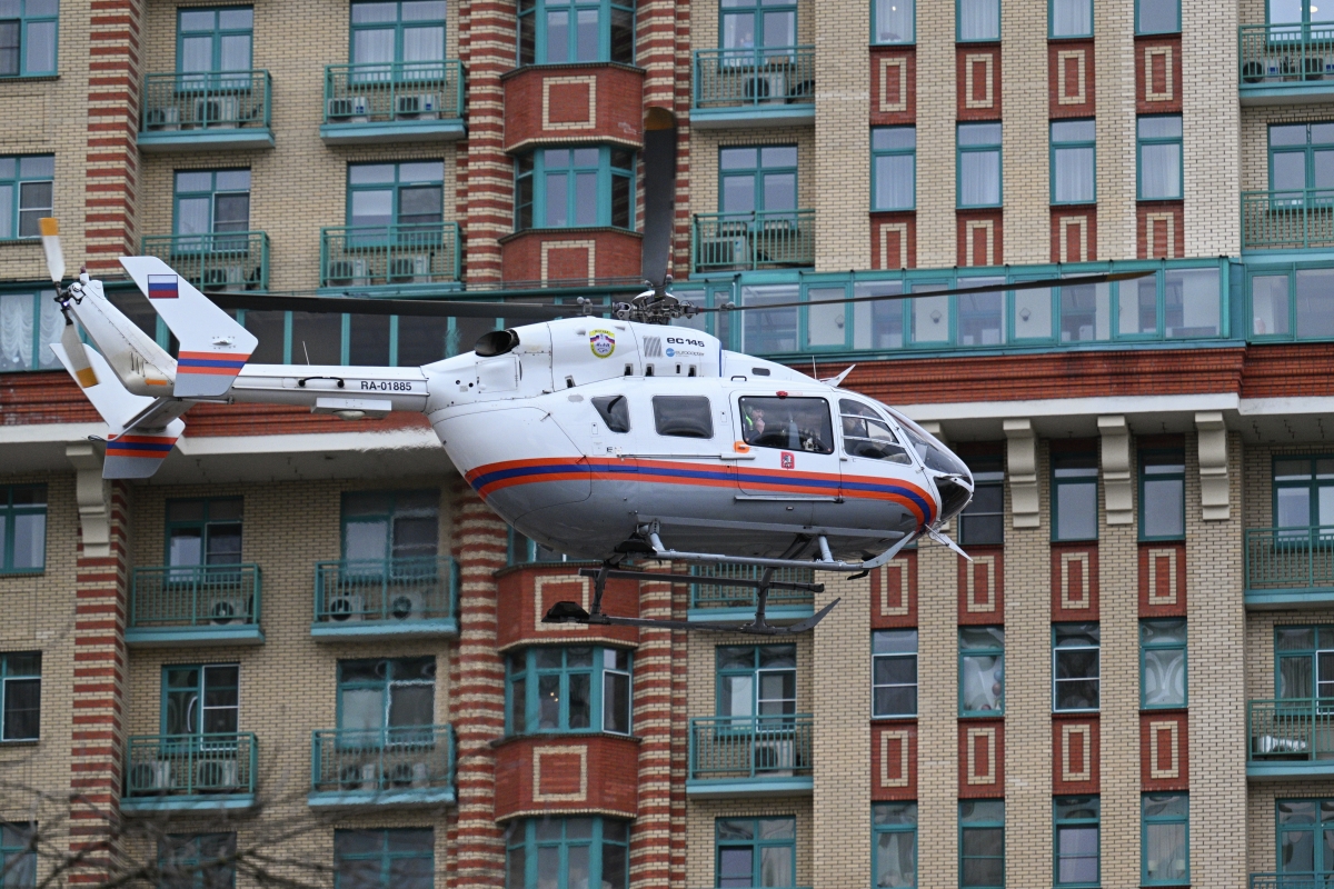 Остановка «Щукино», конечная. В ста метрах — знаменитый столичный ЖК «Алые Паруса». Для полудня понедельника здесь было довольно оживленно — собирались любопытные прохожие и журналисты. Всем было интересно узнать, что произошло, ведь прямо на дороге «припарковался» вертолет Московского авиационного центра, заняв всю разворотную площадку автобусов.