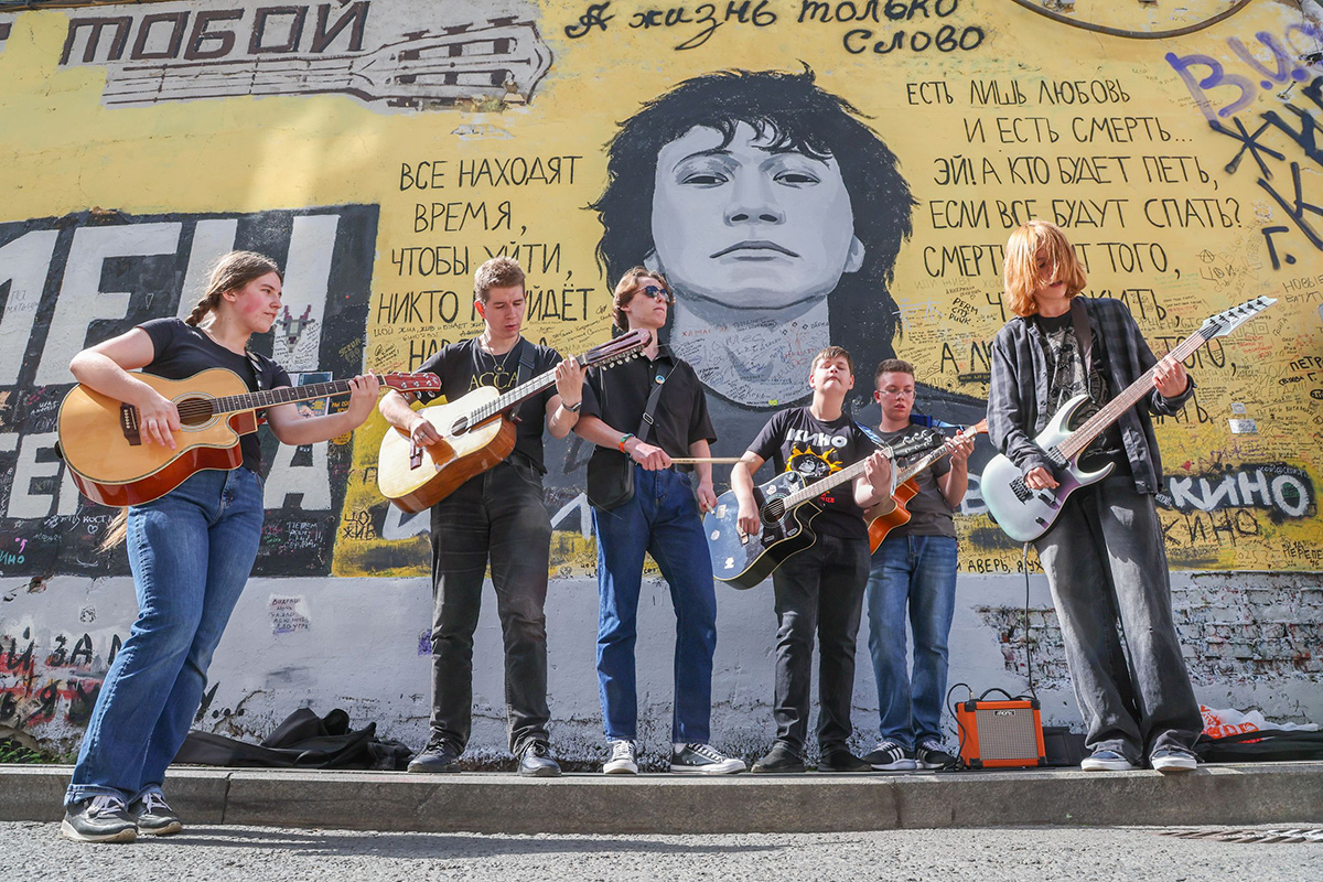 Фанаты почтили память Цоя у его стены на Старом Арбате в Москве