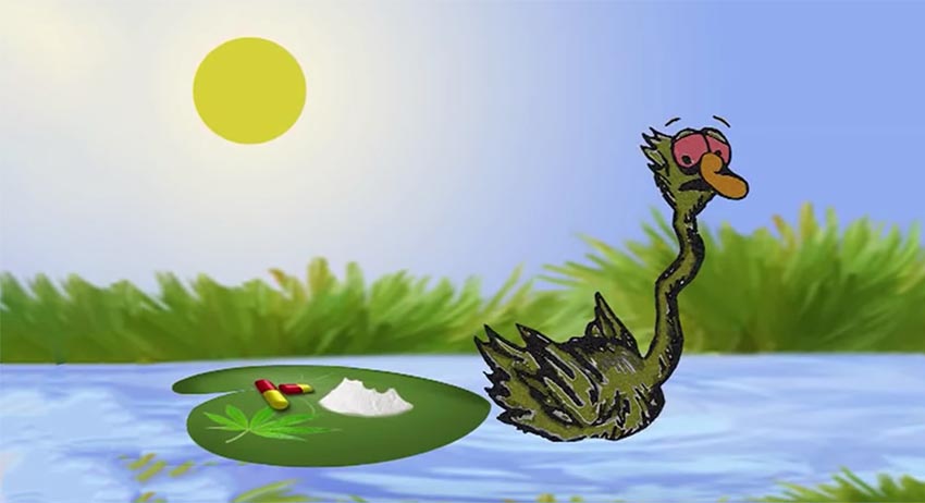 Трёхминутный мультфильм показывает жизнь белого лебедя до и после того, как он попробовал запрещённые вещества. Перед рисованным лебедем прямо на пруду возникает наркотическая скатерть с различными видами схематично изображённых наркотиков, которые он с интересом пробует. Дальше заключённые изобразили муки «ломки», которая побуждает уже изрядно позеленевшего лебедя возвращаться к скатерти ещё и ещё.