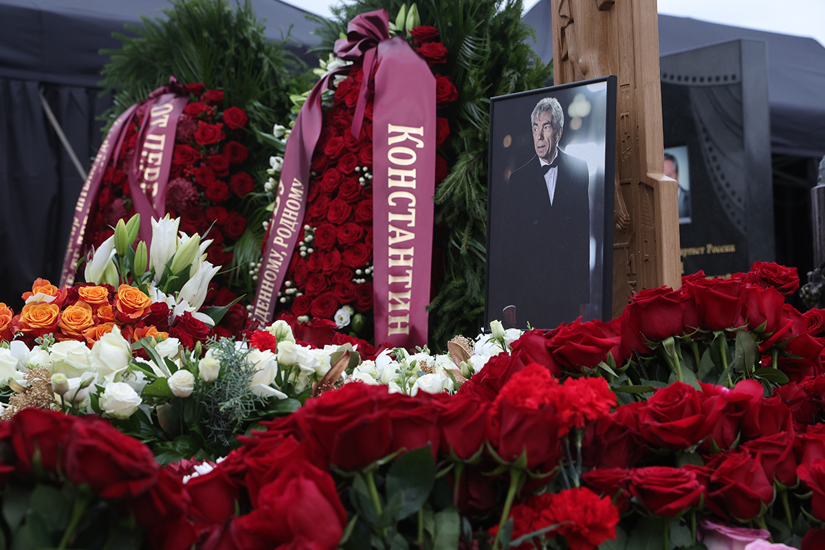 Константин Эрнст на церемонии прощания с телеведущим Юрием Николаевым на Троекуровском кладбище в Москве