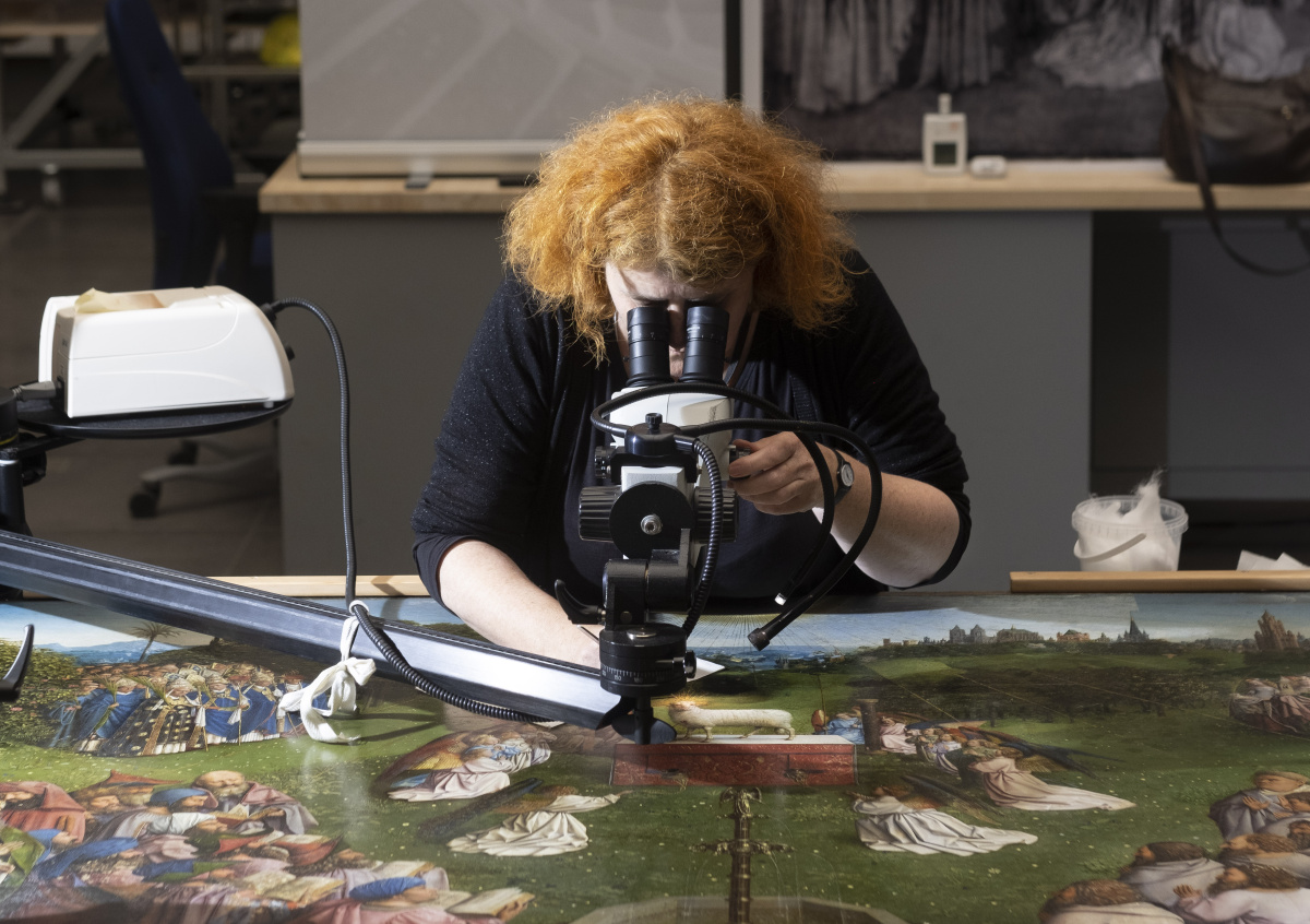Реставрация произведения 1432 года началась в октябре 2012 года в Музее изящных искусств в Генте. На восстановительные работы было выделено $2,4 млн.
