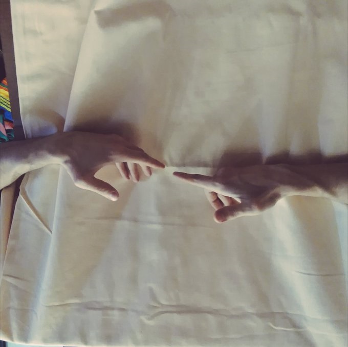 Пользователи Twitter сделали из подручных материалов пародии на знаменитые работы мастеров, среди которых — «Алёнушка» Виктора Васнецова, «Иван Грозный и сын его Иван 16 ноября 1581 года» Ильи Репина и элемент «Сотворения Адама» Микеланджело Буонарроти.