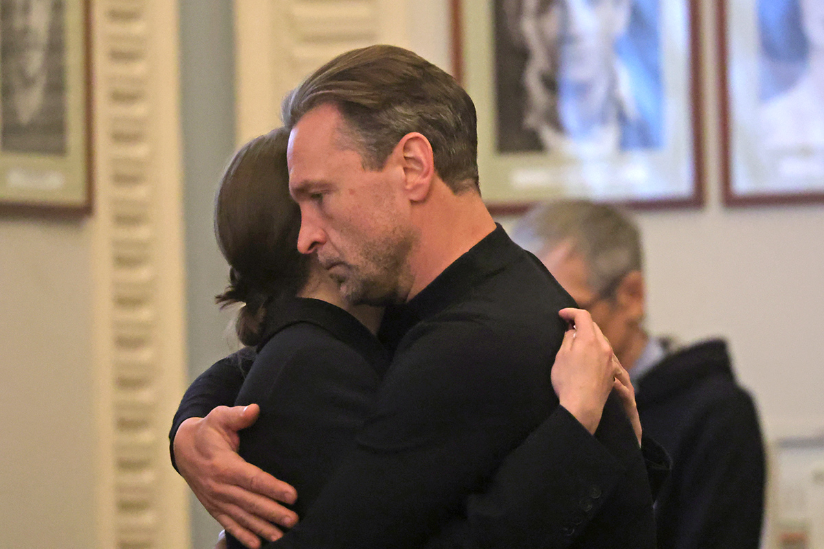 Анна Чиповская и Виктор Добронравов на церемонии прощания с заслуженной артисткой России Ольгой Чиповской