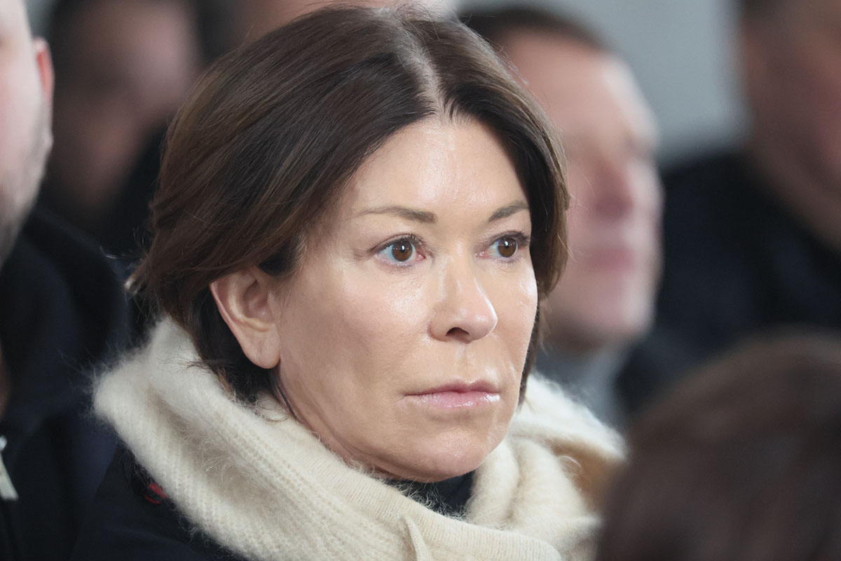 Телеведущая Ольга Слуцкер на церемонии прощания с продюсером и телеведущим Александром Олейниковым в прощальном зале Троекуровского кладбища