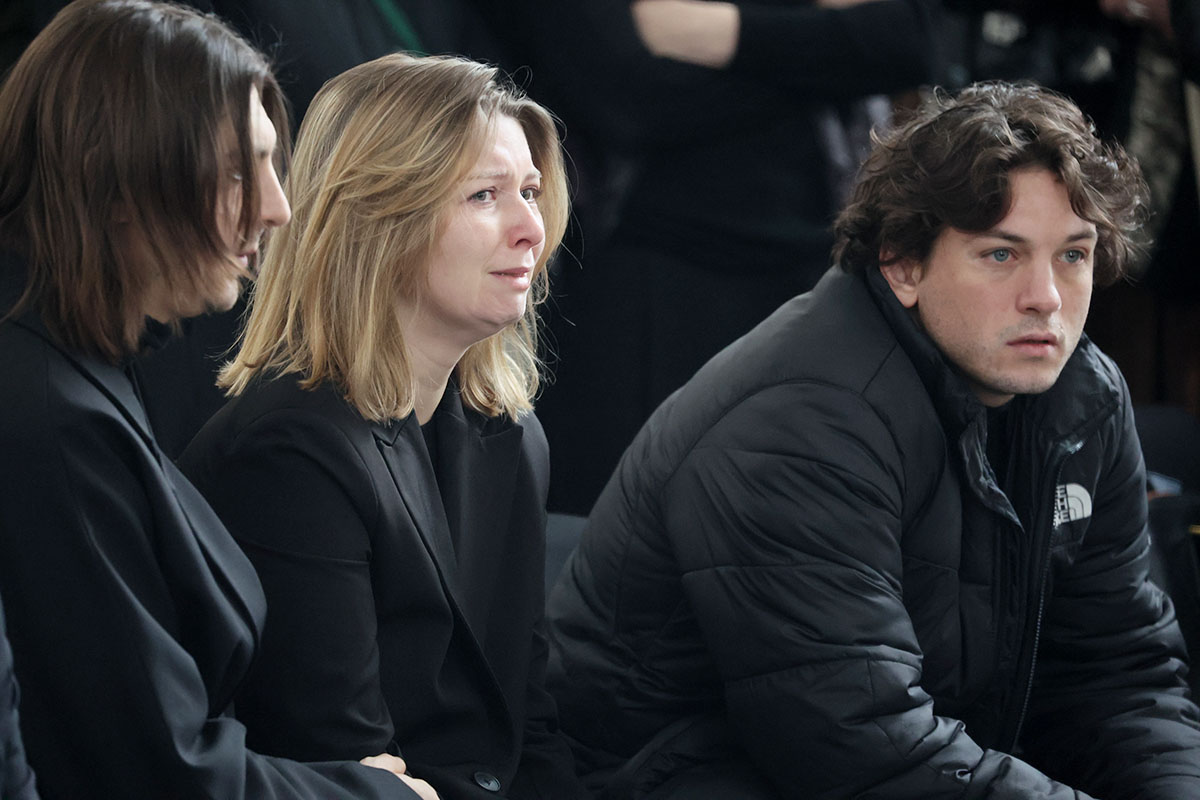 Дети Александра Олейникова на церемонии прощания со своим отцом в прощальном зале Троекуровского кладбища
