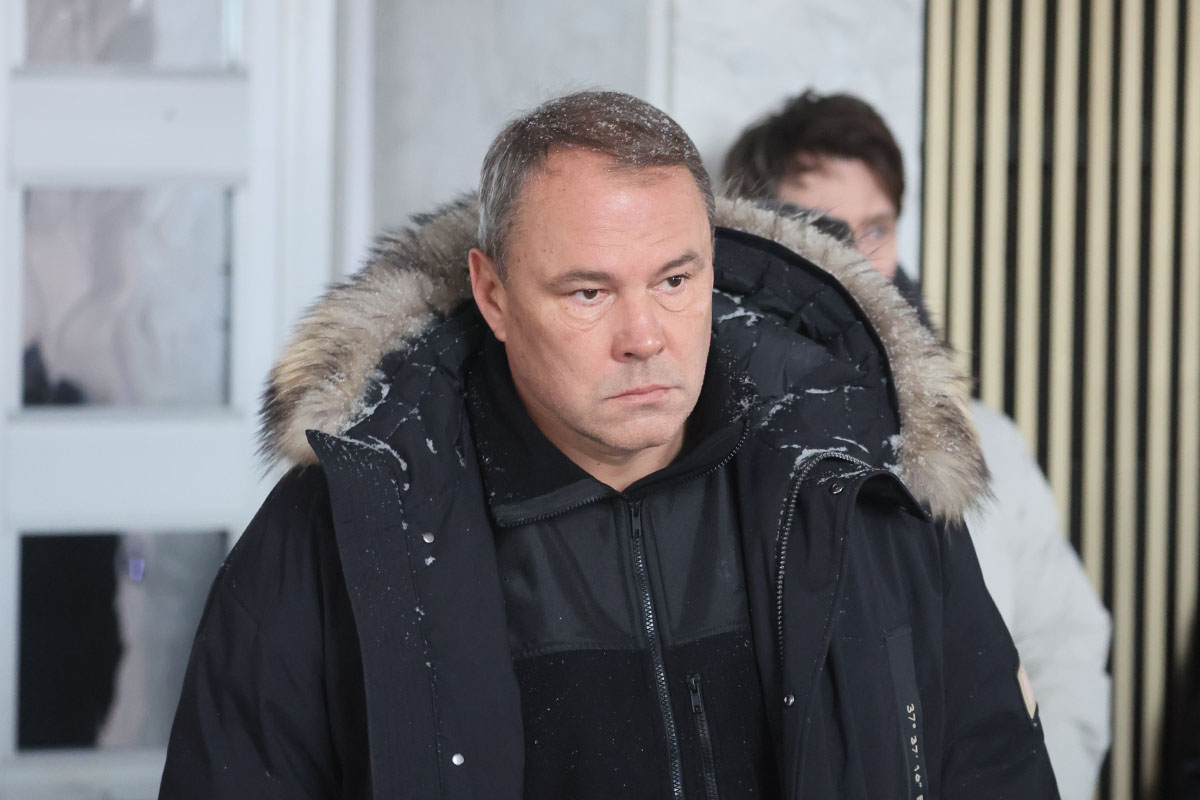 Актер Леонид Ярмольник на церемонии прощания с продюсером и телеведущим Александром Олейниковым в прощальном зале Троекуровского кладбища