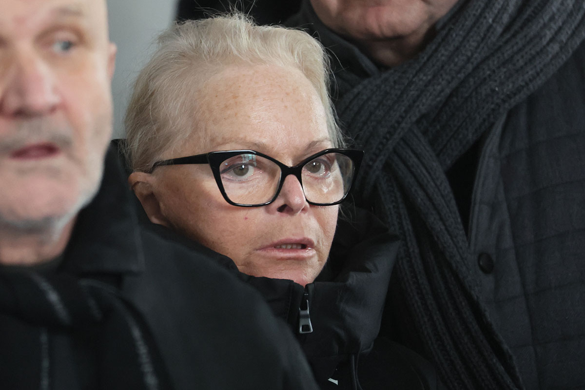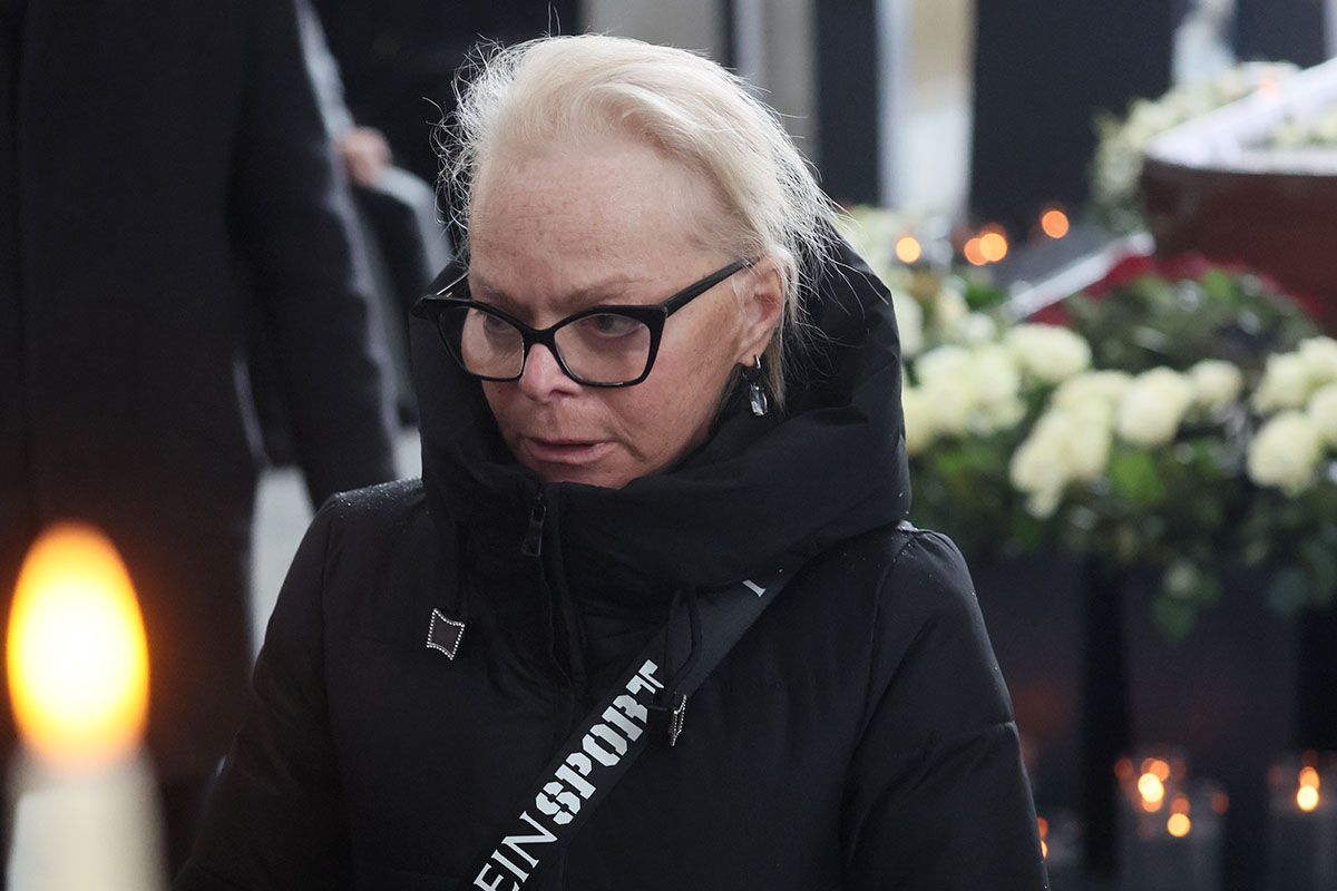 Певица Лариса Долина на церемонии прощания с продюсером и телеведущим Александром Олейниковым в прощальном зале Троекуровского кладбища