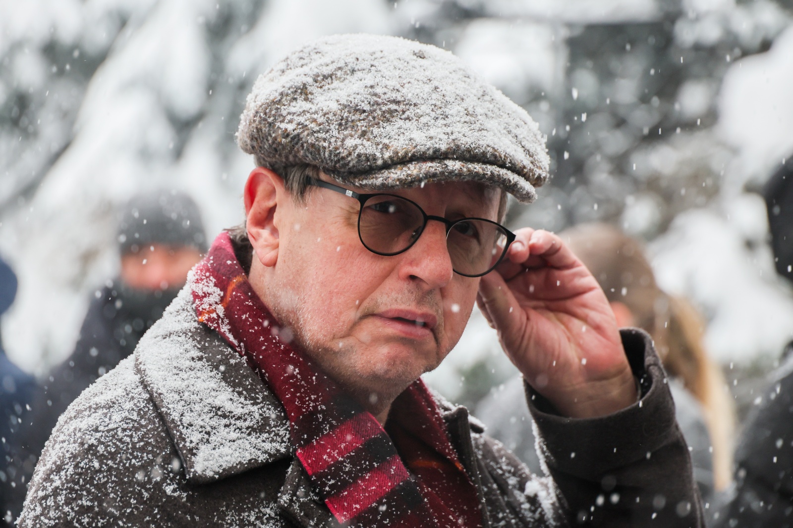Петр Толстой на церемонии прощания с продюсером и телеведущим Александром Олейниковым в прощальном зале Троекуровского кладбища