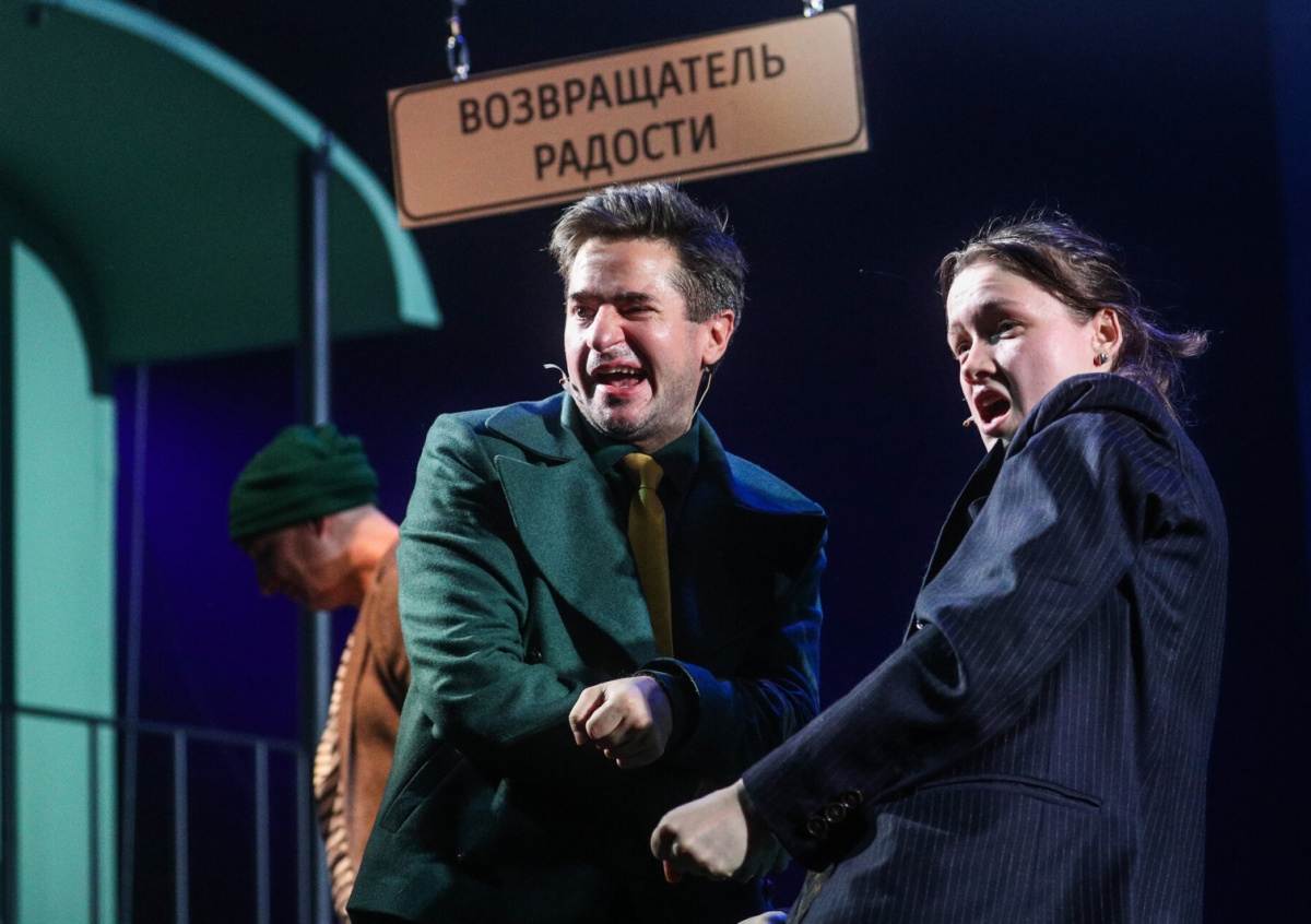 Актриса Наталья Ушакова в роли Фурц и актер Анатолий Кормановский в роли Главного цензора во время репетиции спектакля «Дальше — сами» («Галя. Волшебная история») режиссера Ивана Комарова в театре «Современник»