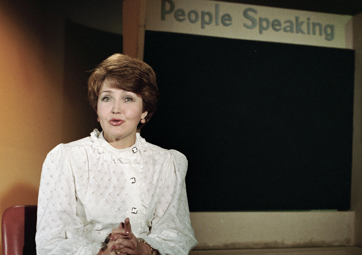 Директор дикторского отдела ЦТ Аза Лихитченко и художественный руководитель отдела народный артист РСФСР Игорь Кириллов на главном выпуске программы «Время», 1986 год
